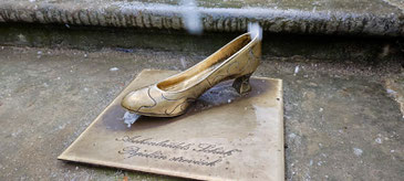 Wie Dieter aus Dresden bemerkte (danke für die Fotos), steht der große Schuh inzwischen auch wieder vor dem Haupteingang. In den haben sich letztes Mal immer die Kinder, die das Schloss besuchten, hineingesetzt. Das hat dem Schuh gar nicht gut getan und daher hat man ihn neuerdings mit einer Plexiglasscheibe abgedeckt. Nun werfen die Besucher Geld hinein - sicher keine schlechte Idee.